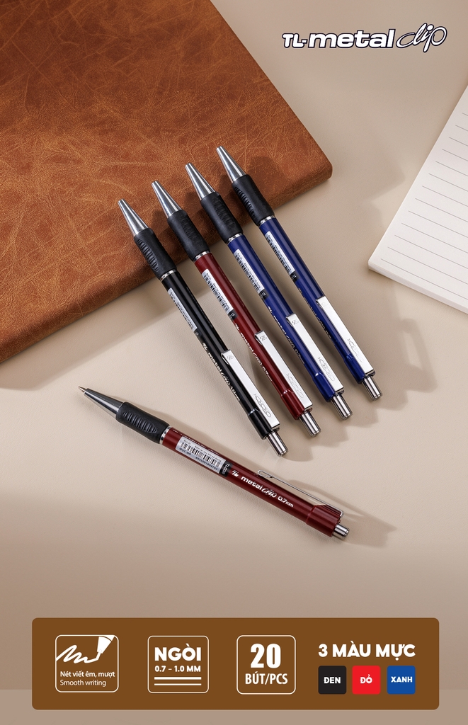 🎨 Giắt bút kim loại mạ crom + nút bấm sáng bóng: Tăng độ sang trọng và độ bền cho sản phẩm.