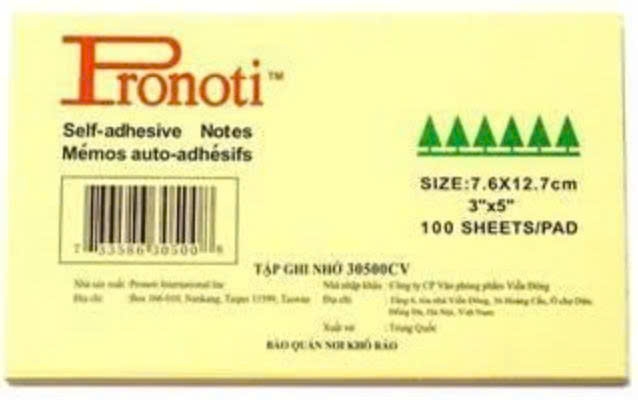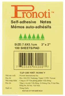 | Pronoti dài ghi chú | 7.6 x 12.5 | Vàng, Hồng, Cam |